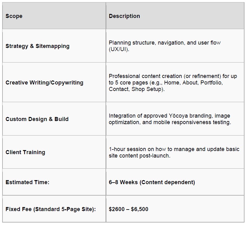 At Yōcoya Design, we believe successful graphic design requires both strategic vision and absolute transparency. This page outlines our core services, fixed-fee packages, estimated timelines, and hourly rates, allowing both new and existing clients to forecast budgets and plan production schedules with confidence.